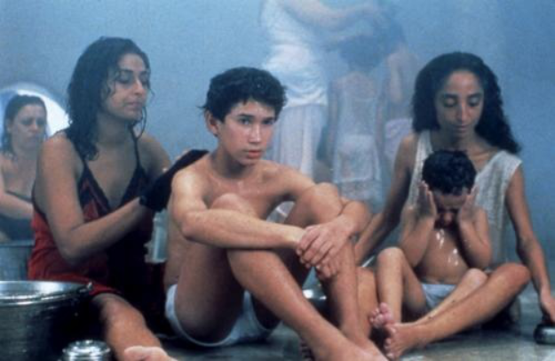 A twelve-year-old boy goes to the women’s Turkish baths with his mother in Halfaouine, a working-class district in the Medina of Tunis. His dawning puberty stirs up his anxiety of being torn between the world of men he feels attracted to and the world of women which still protects him. This story is familiar to all children around the world but it takes on a specific meaning in today’s Muslim world